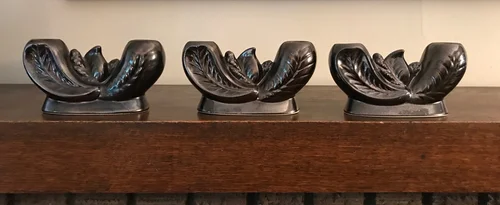 These candelabra hold two tapers each and are meant to be used with a console bowl as a centerpiece.