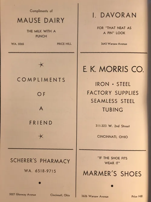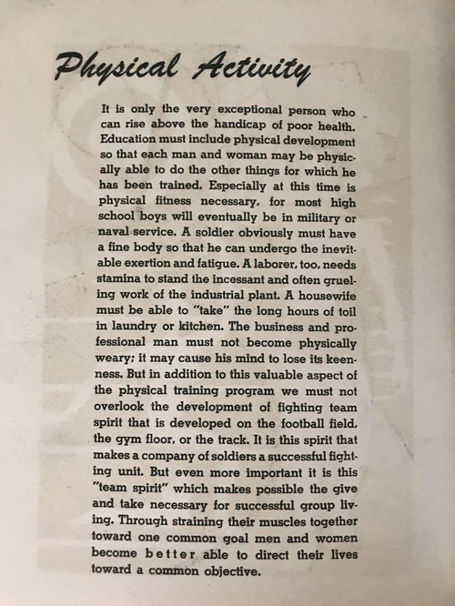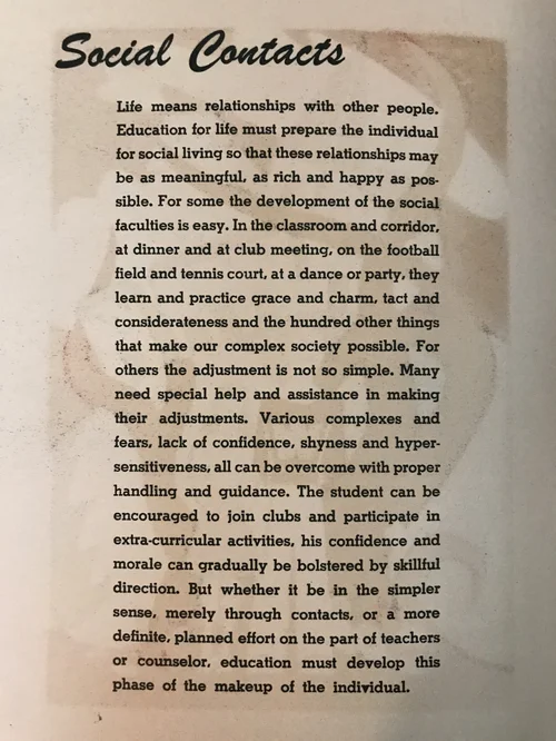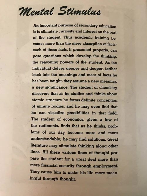 They are printed on a heavy manila-colored stock, very different from the rest of the pages. Each one has an essay letterpress printed on the back. Apparently the students produced these in the printshop at the high school.